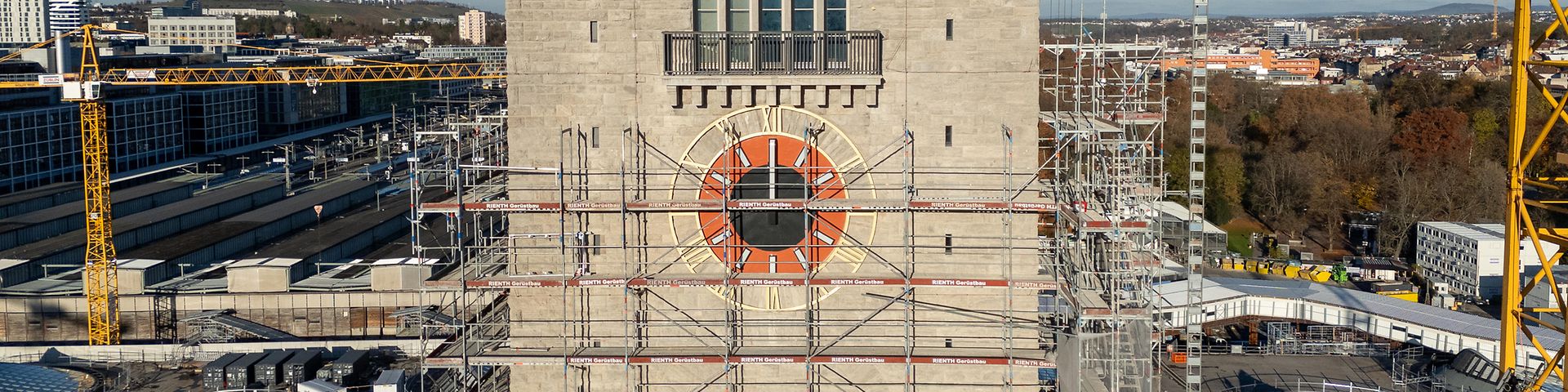 (Stuttgart, 19. November 2025) Monatelang vermisst, kehrt jetzt ein Klassiker buchstäblich glanzvoll an seinen Platz zurück: die Turmuhr am Bonatzbauturm. Für den neuen Glanz war eine aufwendige Restaurierung notwendig. Zu der weithin sichtbaren Uhr zählen massive Zeiger mit einem Gewicht von mehr als 100 Kilogramm sowie Teile mit Einschusslöchern aus dem Zweiten Weltkrieg.