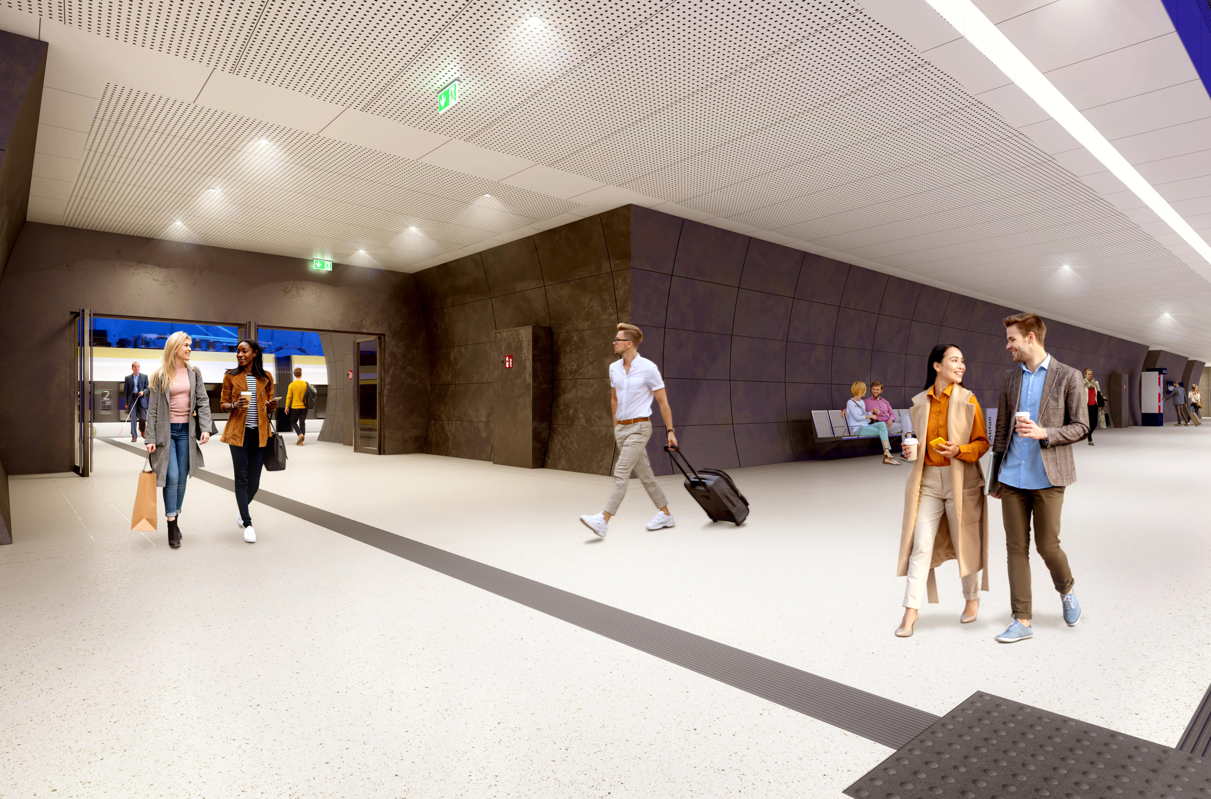 Reisende benötigen von der Innenstadt zur neuen Station am Flughafen künftig nur noch sechs Minuten. Heute dauert die Fahrt rund eine halbe Stunde.