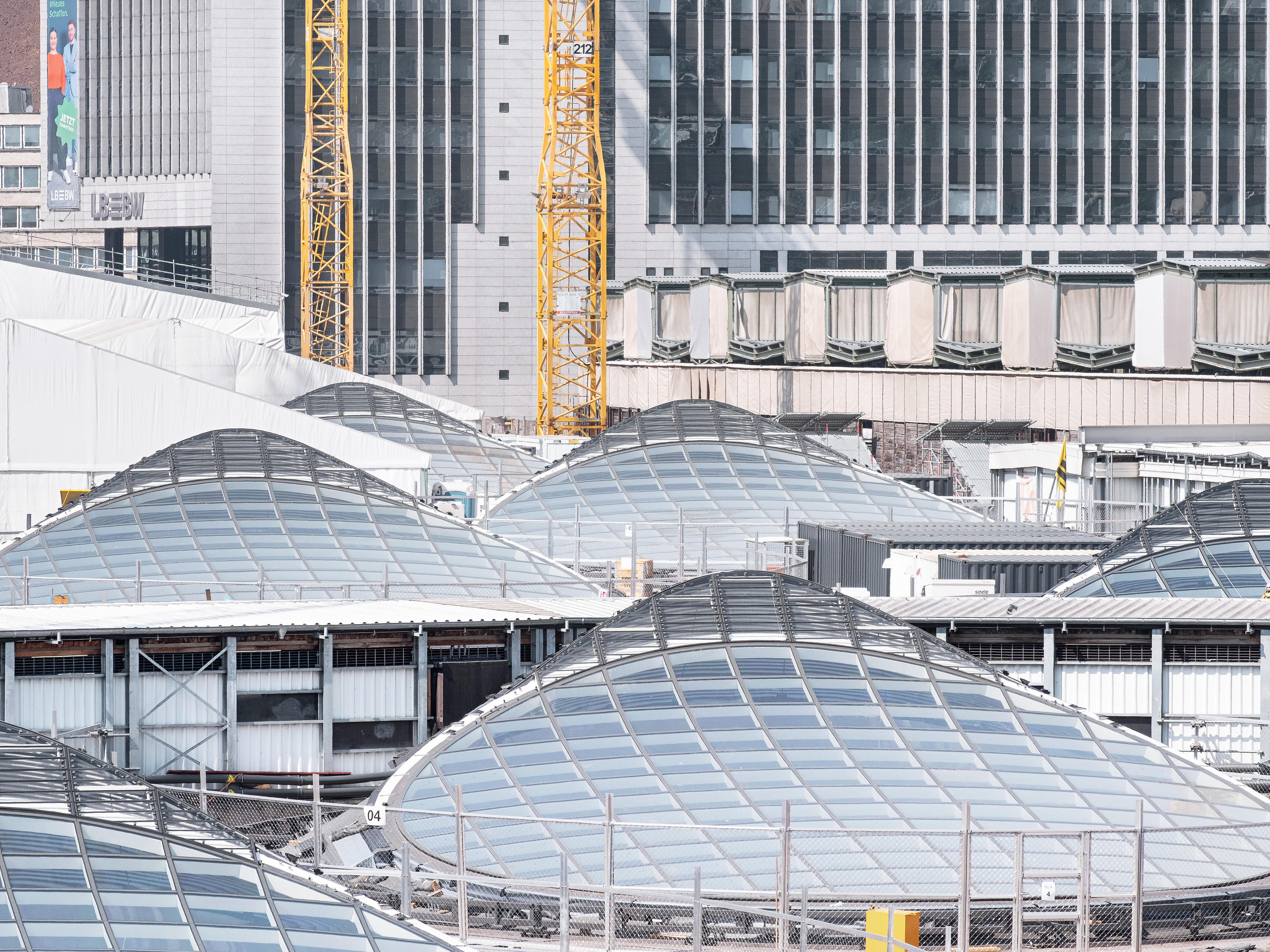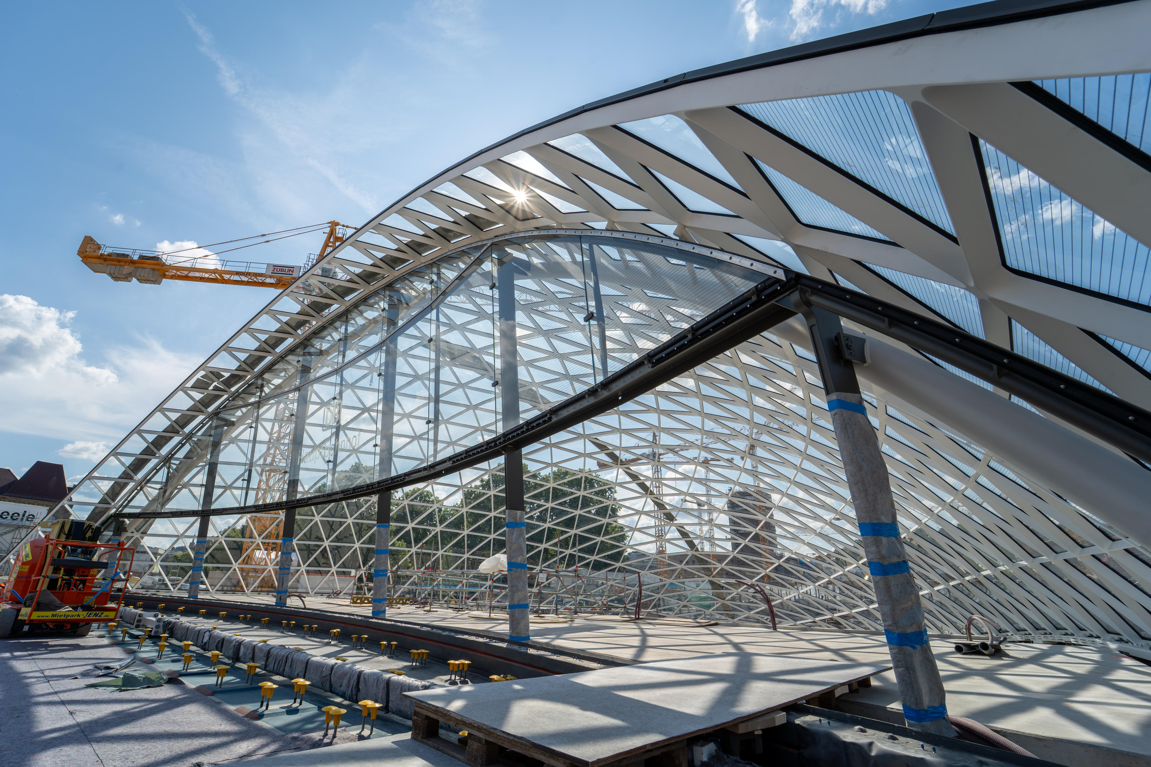 Die mehr als 400 Meter lange Bahnsteighalle liegt um rund 90 Grad gedreht zum bisherigen Kopfbahnhof und verfügt über acht Gleise.